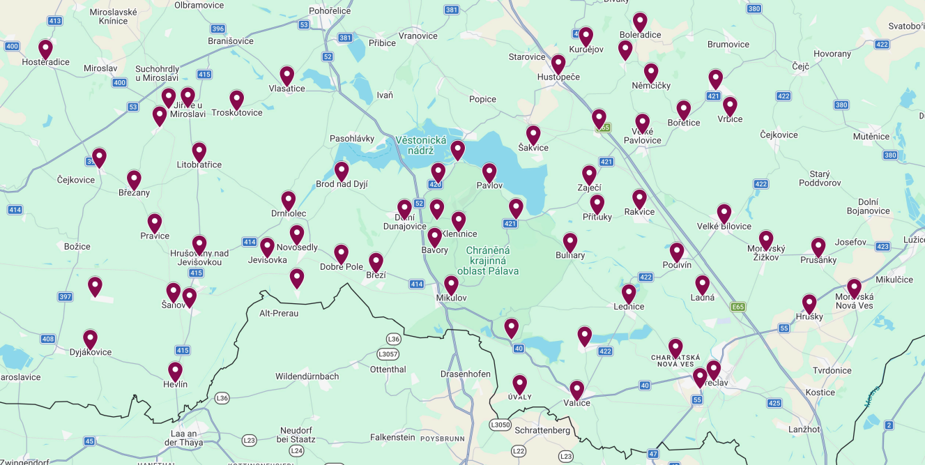 Rozvážíme do 62 obcí v okolí Břeclavi